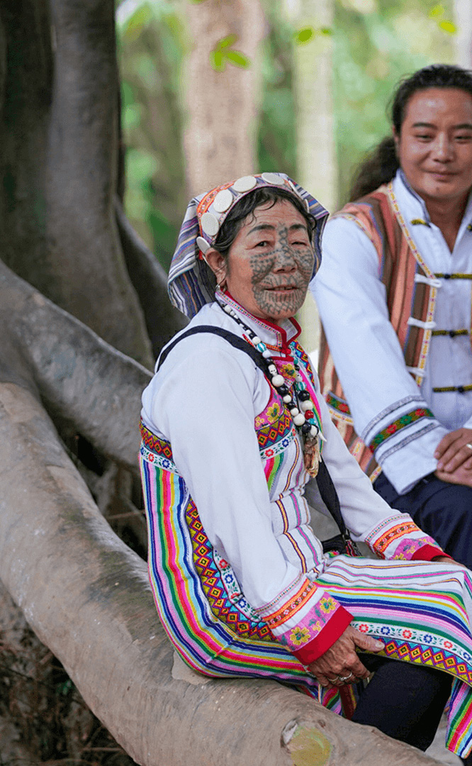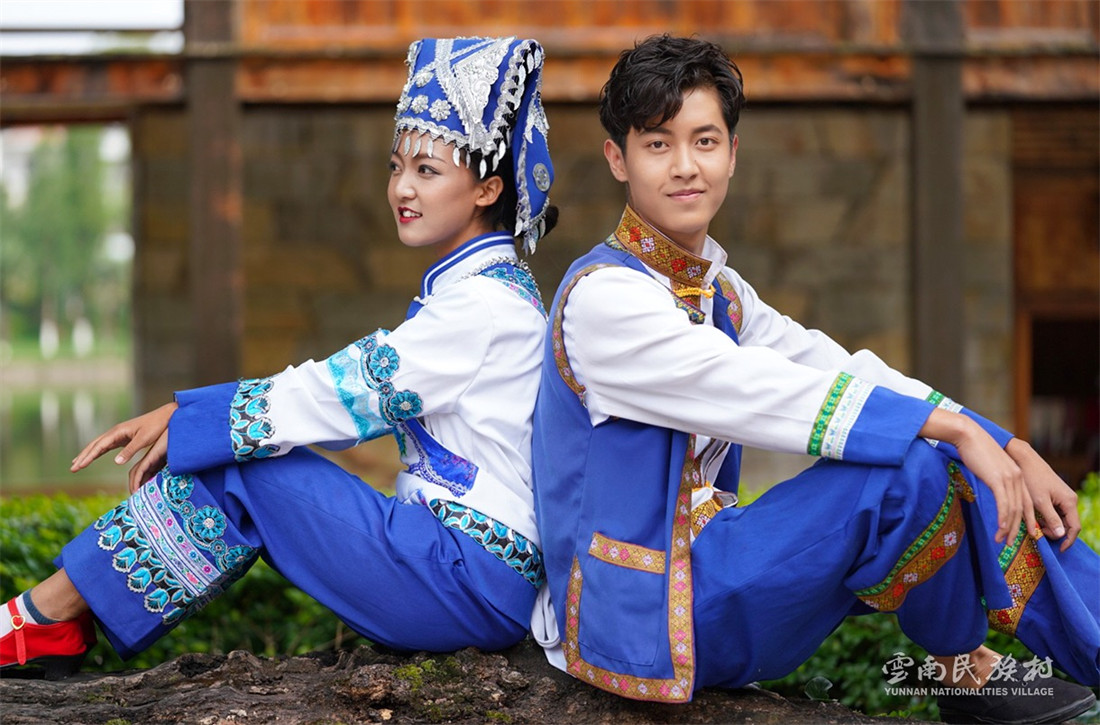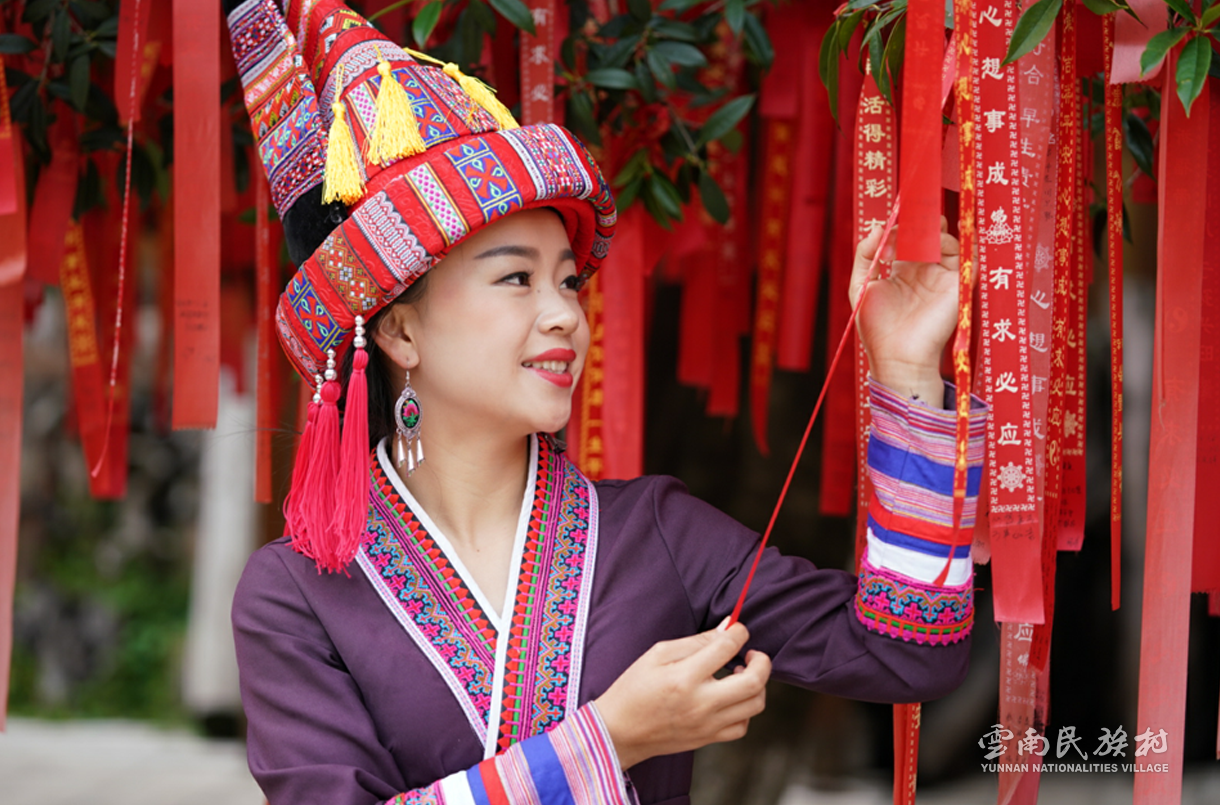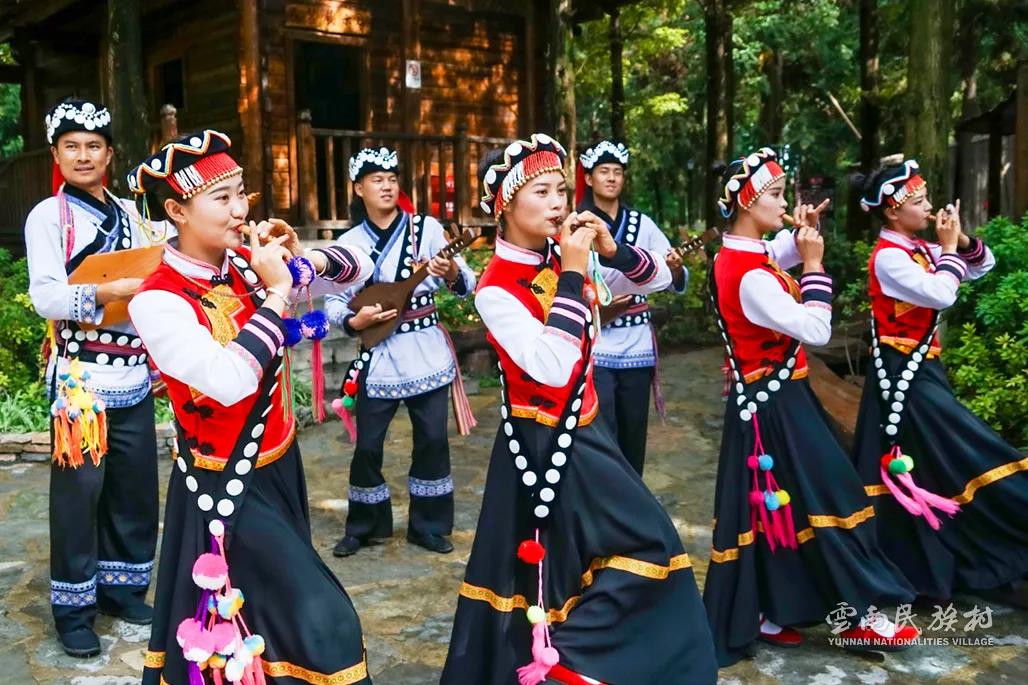 彝族在云南境內(nèi)約471萬人,是省內(nèi)人口最多、分布最廣的少數(shù)民族,主要聚居在金沙江、元江流域和哀牢山、無量山腹地。彝族是一個(gè)能歌善舞的民族,民間打歌、跳樂之風(fēng)盛行,大三弦、跌腳舞久負(fù)盛名?;鸢压?jié)是彝族最具特色的民族節(jié)日。彝族村占地50余畝,三虎浮雕墻與虎頭內(nèi)祖師形象表現(xiàn)了彝族虎鷹文化。太陽(yáng)歷廣場(chǎng)圖騰柱上有太陽(yáng)、虎、火和八卦圖形象,周圍環(huán)繞著10個(gè)朝向不同的月球造型,外圓周有12生肖石雕。依山而建的“...
